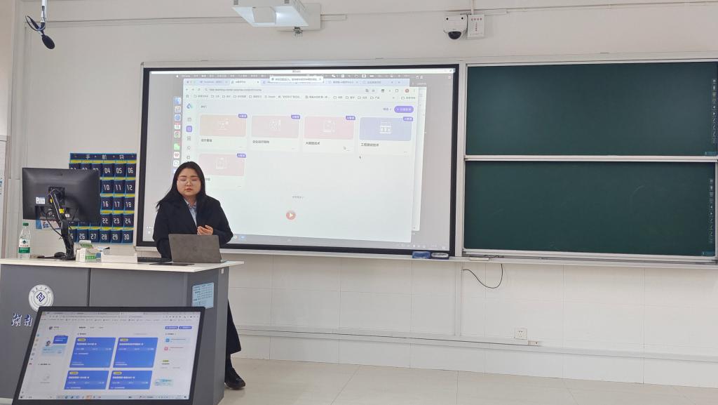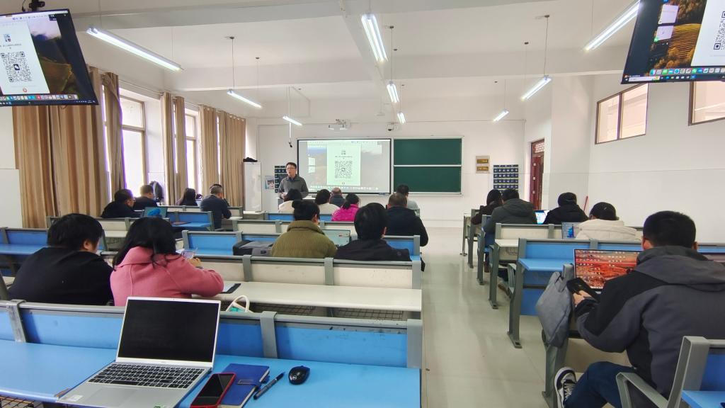 江浩重点介绍了AI教学中心平台的基础功能模块、核心应用场景以及AI教学助手。黄丹蕾以《管理学》课程为例,系统讲解了如何创建和使用智慧课程、智能体、知识图谱,以及AI技术在教学设计、教学研讨、作业发布和批改等方面的具体应用。在研讨环节,老师们围绕AI赋能教育教学”展开深入交流。
