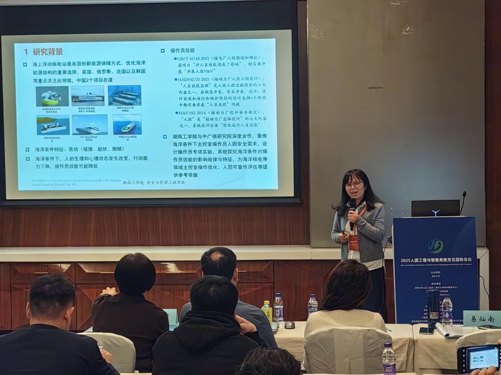 “智能装备系统人因工程”分论坛,易灿南教授分享了我院人因可靠性与安全团队创新性研究成果——“海洋条件下主控室操作员效能研究”,该研究依托永利承担的某核电研究院海上浮动堆重点项目开展,探究了海洋条件对操作员作业绩效的影响及操作员生理、心理特征的变化规律与失误机理,报告内容引起热议,体现了我院在复杂系统人因安全相关领域的研究前沿性与研究积累。