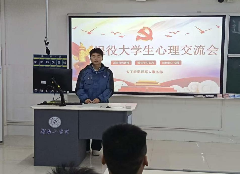 为深入贯彻落实立德树人根本任务,切实做好退役大学生复学后的服务保障工作,帮助其快速适应校园生活、缓解心理压力、明确发展方向。12月4日,安全与管理工程学院退役军人事务部在5307教室精心组织了退役大学生心理交流会。学院各个专业的退役大学生代表齐聚一堂,在坦诚沟通与温暖互动中收获支持、凝聚力量,充分彰显了学院对退役学子群体的精准关怀与全面护航。