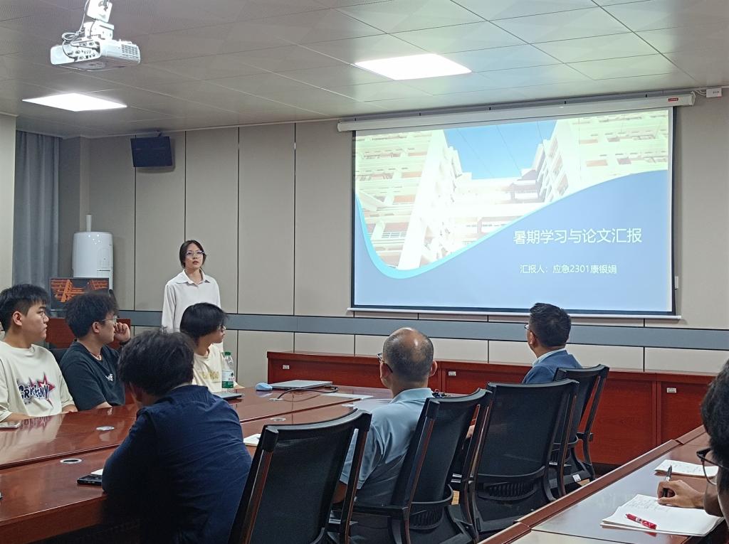 会议中,阳阿萍、郑钊、闫洪宇、古清元、沈乐为康银娟6位同学依次进行汇报,讲述了暑假期间的论文撰写、实验方案制定以及学习情况。就学生论文中和实验中存在的一些问题,老师们展开了讨论,并且提出了相关建议。