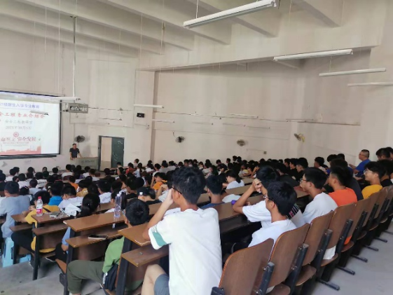 然后,优秀校友、中交四航局五公司安全总监王怡山为新生分享了大学时期学习经历和毕业后工作经历。嘱咐学弟学妹们要努力通过计算机等级考试、大学生英语四六级考试,沉下心来学习专业知识,为日后工作、考取执业资格证打好理论基础。并向同学们介绍了安全工程人才的职场晋升路线,以及相关工作待遇。