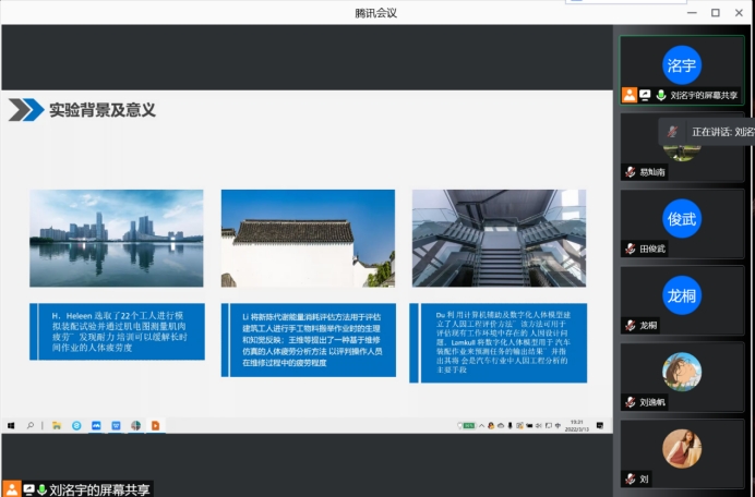 本次汇报主题为作业人员疲劳研究来自安全与管理工程学院物流工程、安全工程的5名本科生形成科研小团队,在易灿南老师的指导下,小组组长刘洺宇同学下载核心期刊论文并分发给组员。组员在组长的带领下,阅读文献,并制作PPT汇报