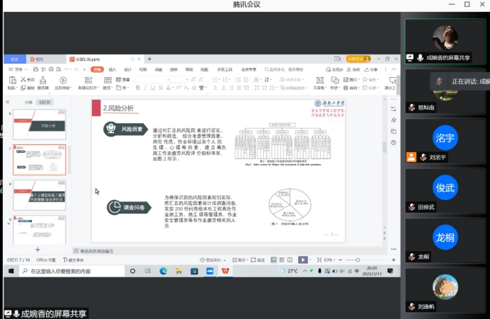 为响应《安全与管理工程学院、人因与安全工程研究院本科生导师制实施办法》并进一步吸引、培养大学生参与创新创业项目,安全与管理工程学院易灿南老师于3月1319:30-21:00组织开展了团队本学期第二次线上文献阅读分享汇报会。易灿南老师、业疲劳与职业安全研究方向的部分同学和南华大学部分研究生等共25余人参与了本次会议。