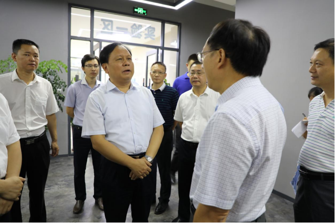 图2 时任衡阳市市委书记周农参观实验室