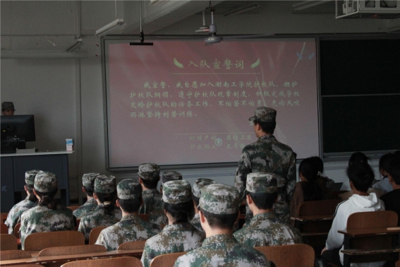 10月25日下午2点30分,304永利集团官网护校队在机械楼4409顺利举行了第十二届护校队队员入队仪式。