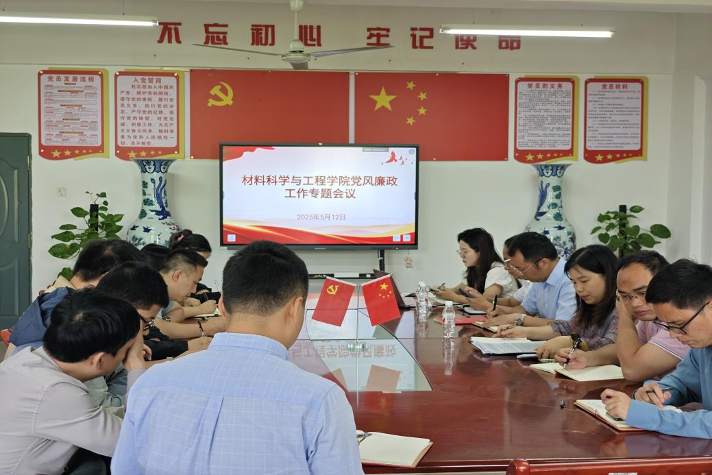 5月12日,材料学院党委在1401会议室召开党风廉政专题会议,会议由党委书记刘赢时主持,全体在家领导、三办主任、教研室实验室正副主任参加会议。