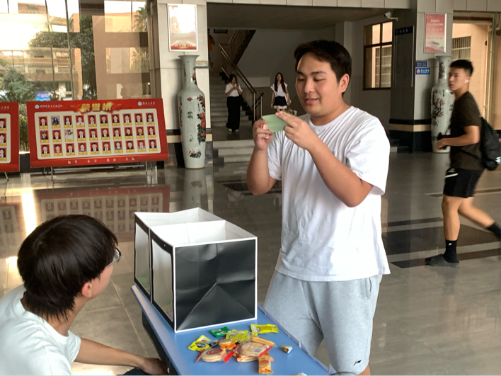其二“情绪小卖部”面向全院学生开放,设回收盒与糖果,同学匿名书写开心或烦恼事投入盒中,每投一次便换得糖果。小小仪式承载“卸负前行”的温暖寓意,吸引众多学生参与。整场活动轻松治愈,传递“关爱自我、悦纳情绪”理念的同时,也展现了学院对学生心理健康状态的关注。