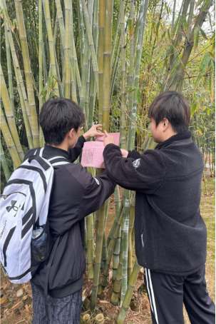 罗心阳讲解了竹子的独特属性,她说这种“草界巨人”生长速度惊人,单日可蹿高逾1米,其轻质中空结构不仅抗压性强,还曾为埃菲尔铁塔等建筑提供设计灵感。作为环保材料的“全能选手”,竹制品可降解、替代塑料,从食堂竹筷到复合材料研究,竹子在材料科学领域的应用潜力令师生们惊叹。