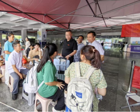 校党委委员、副校长刘龙昌一行来到衡阳东站迎新点慰问坚守岗位的迎新工作人员并与新生及家长亲切交谈,耐心解答新生和家长的问题,鼓励新生充分利用学校资源,积极参加实践活动,不断提升自己。