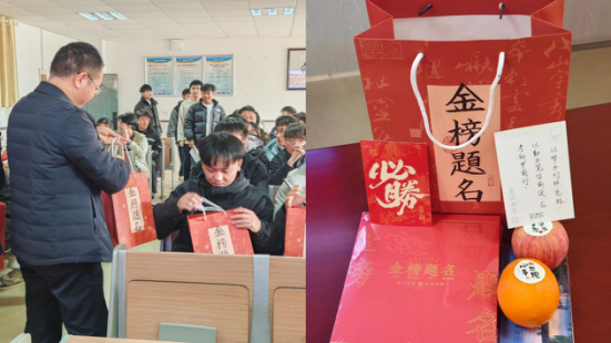 老师们将寓意心想事成的橙子、平安上岸”的苹果以及妙笔生花笔记本礼盒送到100多名考研学生手中,用这份心意传递温暖与祝福。每一份礼物都承载着老师们对学生最真挚的关怀与支持,希望这些小小的心意能够成为学生们备考路上的一剂强心针,帮助他们克服困难,勇往直前。