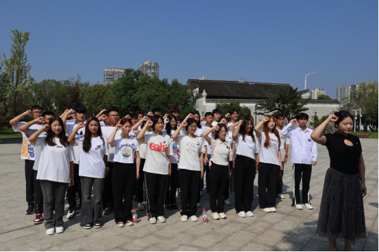 湘南学联纪念馆群雕像,罗心阳带领新团员进行入团宣誓、老团员重温入团誓词,誓言铿锵有力,展示了青年团员高举团旗跟党走的坚定决心、高举中国特色社会主义伟大旗帜的坚定信念和投身民族复兴伟业的坚定责任担当。