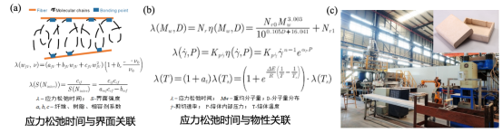 2)植物纤维基复合材料的松弛行为对翘曲变形、制品稳定性的影响。团队研究了多种植物纤维聚合物复合体系在不同载荷下的应力传导特性,推导了复合体系松弛时间的数学解析。建立界面作用与聚合物链应力松弛的关联,发现了松弛速率的界面强度临界值;明确了植物纤维取向所产生的能量耗散对于应力松弛的影响规律,构建了不同体系植物纤维取向与聚合物联应力松弛的关联模型。