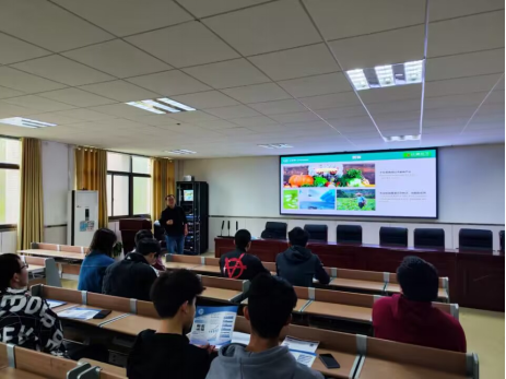 学院就业专干李前奔老师出席招聘会,与宣讲人员沟通并鼓励在场学生积极准备并递交简历。同学们在现场认真聆听并提问,在宣讲后积极投交了简历。