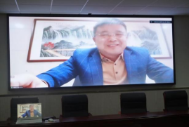 “校友话就业”环节94 届优秀校友、中材株洲水泥有限公司执行董事、党总支书记、总经理刘道忠,95 届优秀校友、湖南万家供热发展有限公司董事长傅国要通过视频连线毕业生,在线交流分享自身学习、工作和人生经验。
