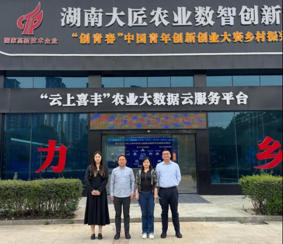 湖南大匠农业科技有限公司刘赢时一行在优秀校友、公司董事长刘奕辰带领下参观了大匠农业数智创新展厅,详细了解云上喜丰农业大数据平台食蚁癌红火蚁智能防控系统AI技术模块数字农业装备中材料的创新应用场景。