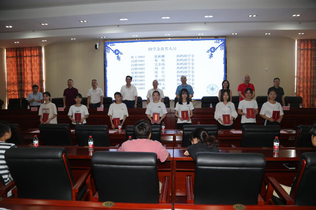 9月16日下午,永利2018~2019年度“海鸥助学奖学金”颁奖大会在学校办公楼12楼报告厅举行。校党委副书记张平教授、原校领导胡波年教授、优秀校友深圳力特实业发展有限公司董事长邹海鸥先生、董事刘萍女士、总经理廖文胜先生、学校相关部门领导及材化学院师生一同出席了颁奖大会。大会由材化学院党委书记刘湘欣主持。