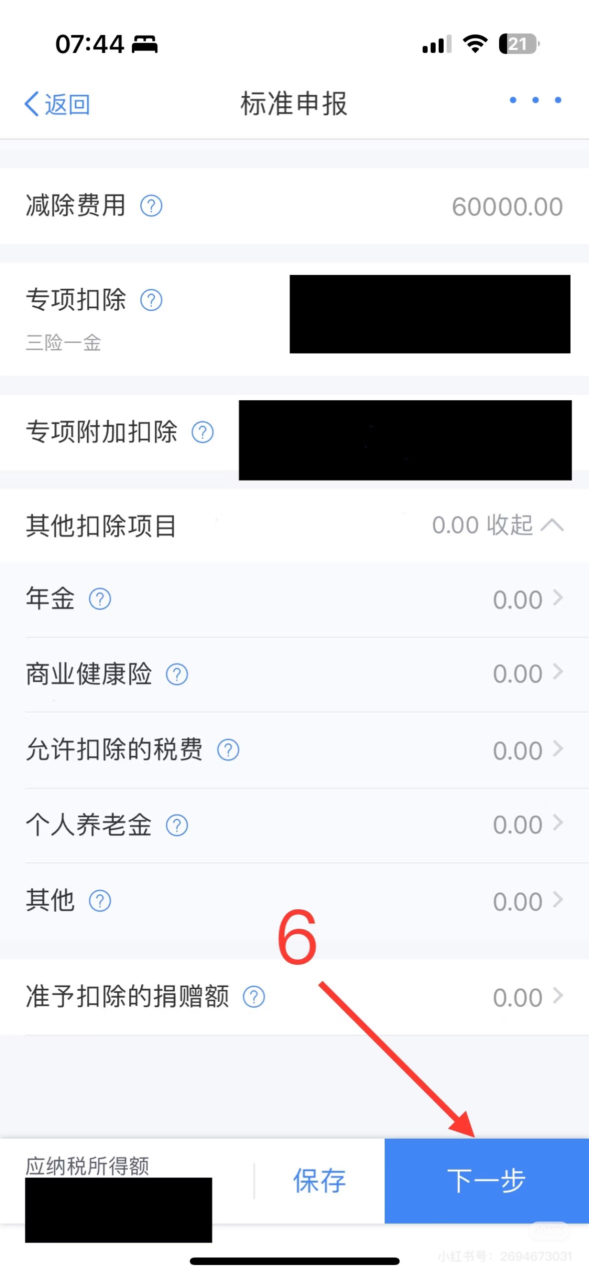 5)核对收入和专项附加扣除扣除,若存在奖金,请选择【全年一次性资金】计税方式。