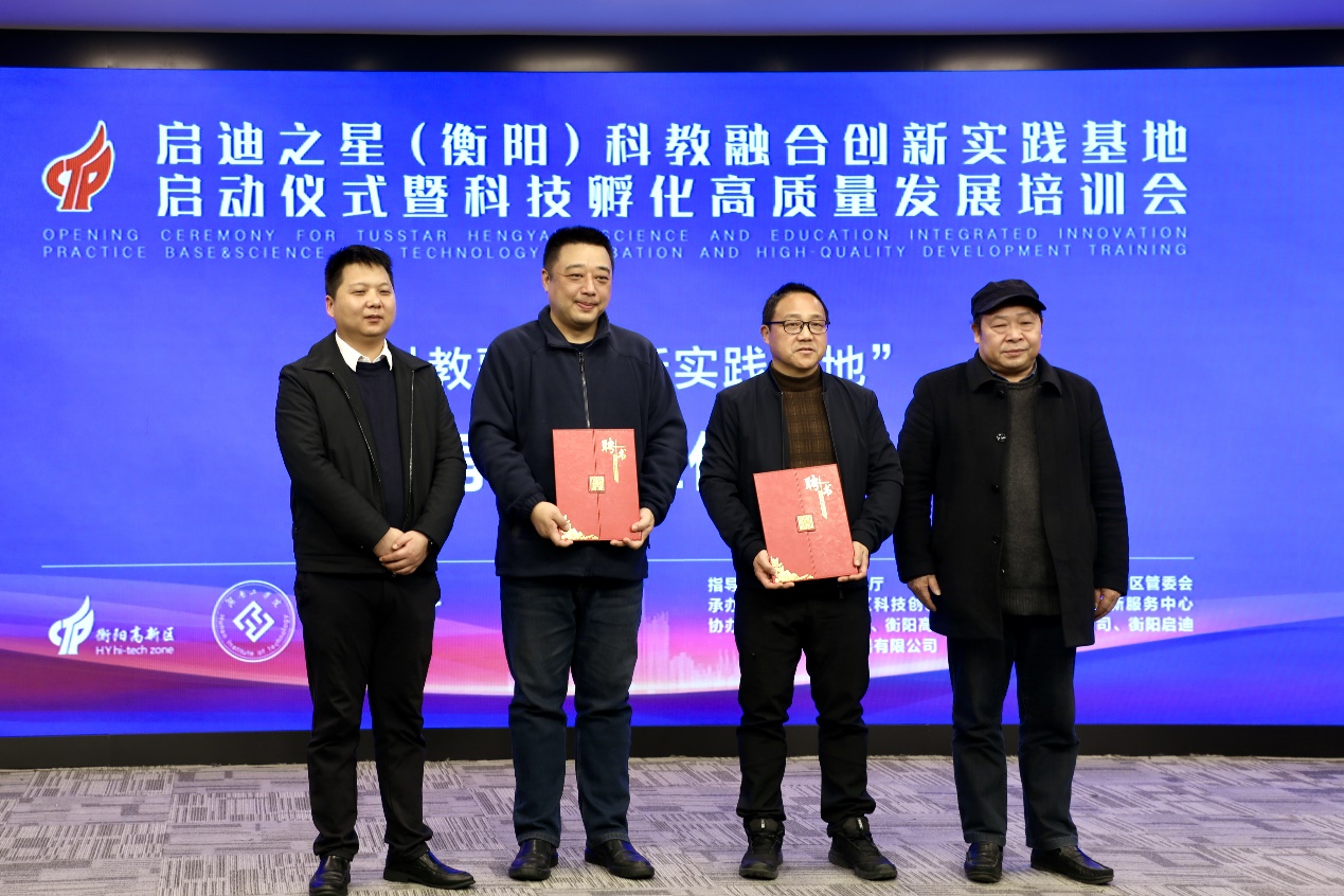 随着5、4、3、2、1倒计时,三方负责人共同点亮启动球,启迪之星(衡阳)科教融合创新实践基地正式鸣笛起航。随后,在省科技厅生产力促进中心、304永利集团官网、高新区和启迪之星相关负责人的见证下,学校创新创业教育中心、高新区科技创新服务中心、启迪之星代表签订了合作共建协议。启动仪式现场还聘请了工信部中小企业优秀服务专家、中国双创导师赵峰和教育部互联网+大赛国赛评委、工信部创客中国大赛国赛评委吴衡作为为基地导师并颁发了聘书。