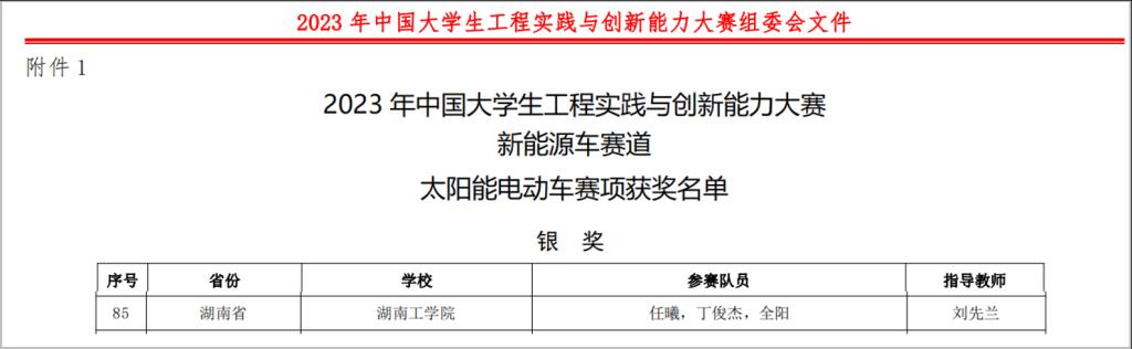 近日,大学生工程实践与创新能力大赛组委会公布了2023 年中国大学生工程实践与创新能力大赛总决赛名单,永利任曦团队设计的作品获得“新能源车”赛道“太阳能电动车”赛项国赛银奖。