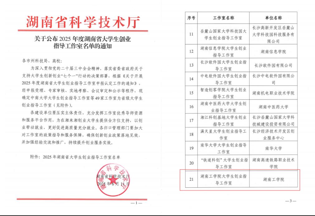 近日,湖南省科学技术厅公布了2025年度湖南省大学生创业指导工作室名单,永利申报的“304永利集团官网大学生创业指导工作室”成功入选,这是永利贯彻落实省委省政府“七个一”行动部署中取得的一项重要成绩。