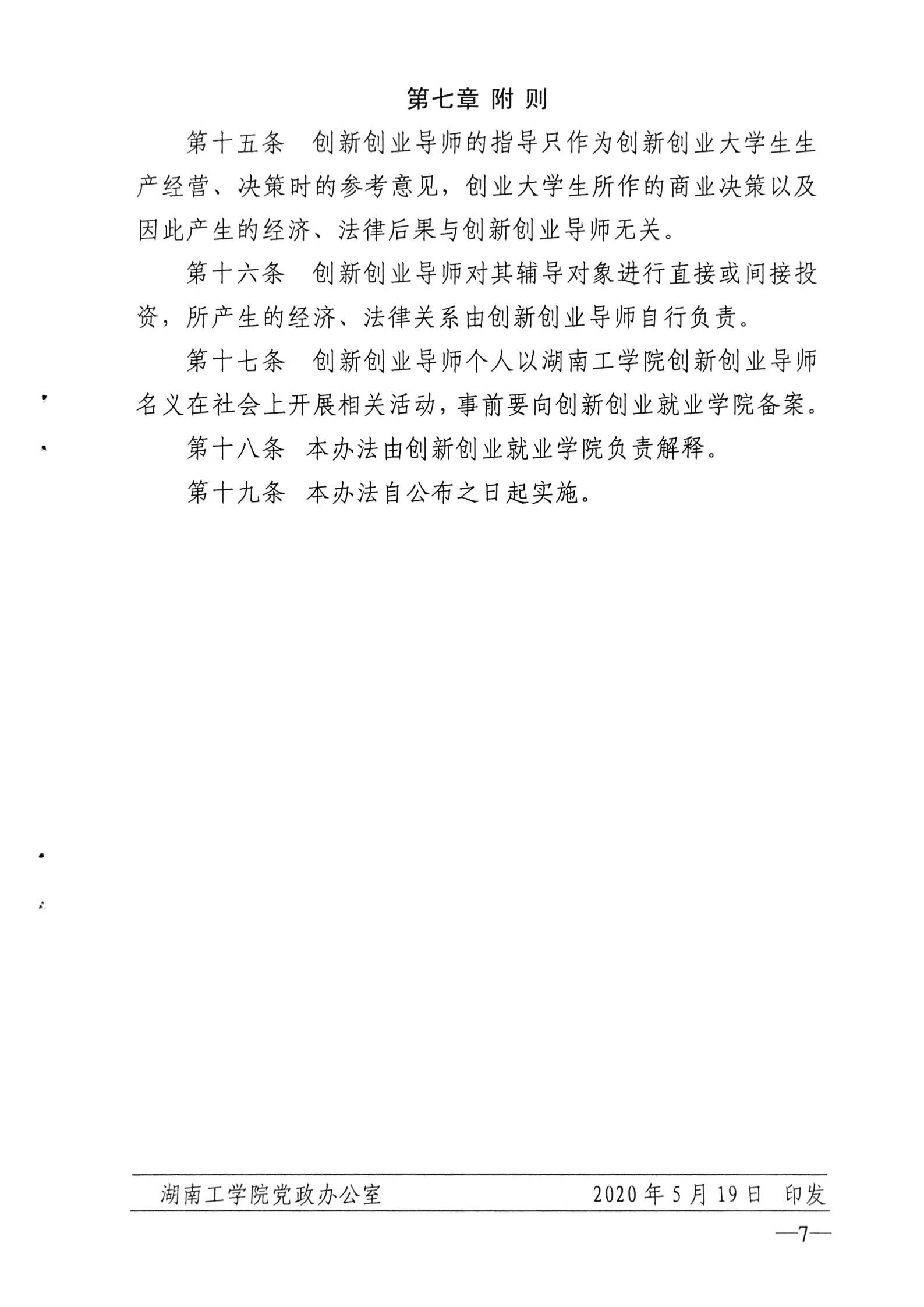 《304永利集团官网大学生创新创业导师遴选与管理办法(试行)》的通知 永利教〔2020〕5号