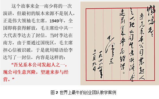 学生在学习管理创业团队的过程中。教师提问引导学生思考:“谁是世界上最牛的创业团队?教师先展示阿里的十八罗汉团队,腾讯的五虎将团队、苹果的十大创业元老等。多数学生会对自己熟悉的创业偶像侃侃而谈。