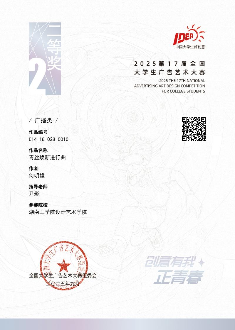 近日,第十七届全国大学生广告艺术大赛(以下简称:大广赛)已落下帷幕,大广赛是A类学科竞赛。在教育部认可的大学生竞赛中,大广赛在文科、艺术类排名第一,是迄今为止全国规模最大、覆盖高校最广、参与师生数最多的全国性文科艺术类竞赛。本届大广赛共收到来自全国29个赛区、1897所高校的58万余件作品,最终40175组作品参评。永利收集作品418件,经过学校初评推送100件作品参加湖南省赛区评选省赛。经过层层选拔,最终永利学生荣获国家级二等奖2项,三等奖1项,优秀奖1项。省级一等奖1项,省级二等奖5项,三等奖12项,省级入围国赛总共28项,在总获奖数量上实现了历史性的突破。