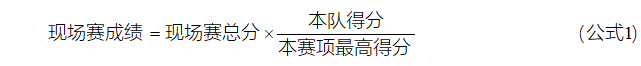 ④ 现场赛成绩汇总:现场赛评分标准见附件1,成绩计数方法如公式1。