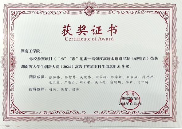 省赛三等奖:“承”“渗”追击高强度高透水道路混凝土破壁者