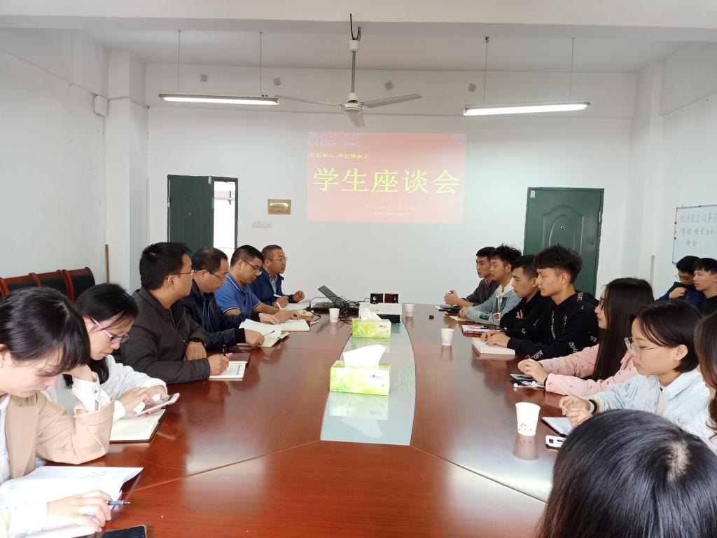 2019年10月18日,电气与信息工程学院在3309会议室召开电气国际2018、2017级学生学生座谈会。参会人员有电信学院院长李祖林、党委书记范志明、副院长喻霞、党委副书记李治军、办公室主任、教学科研办教师代表、辅导员代表及电气国际2018、2017级学生代表。会议由院长李祖林主持。