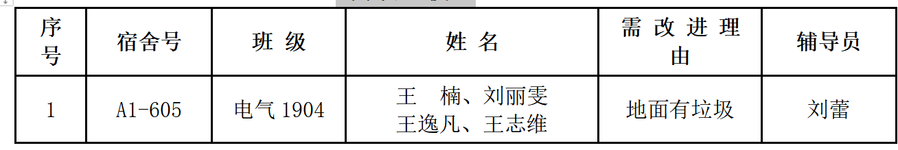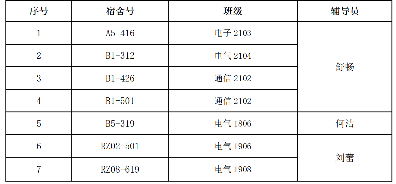 2021年下半年文明宿舍建设活动第十三周,我院“文明宿舍创建活动”工作组本着“公平、公正、公开”的原则,对我院全部宿舍进行了彻底检查。现将检查结果公布如下: