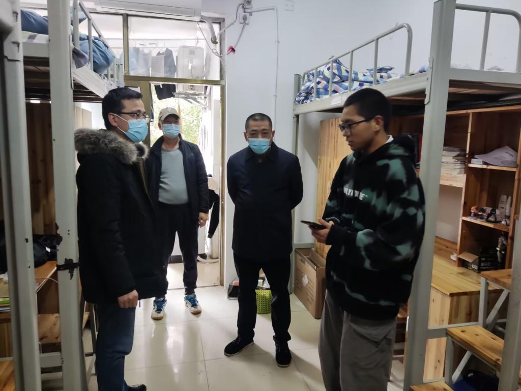 走访过程中,黄红卫一行深入学生宿舍排查安全隐患,对安全卫生状况和公共设施进行了检查,并与同学们进行了近距离、亲切的交流。了解学生自愿离校返家手续办理情况并叮嘱返乡途中注意安全,做好疫情防控自我管理和个人防护。对于暂时留校的同学,关心他们的留校原因和学习生活情况,以及临近考试的复习安排和心理状态。叮嘱同学们遇到困难时,可以及时向辅导员反馈。交流过程中,对于同学们比较关心的问题,积极倾听并逐一予以详细解答。
