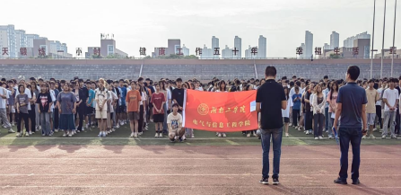6月12日,电气与信息工程学院在北运动场举行“青春践行二十大,踔厉奋发促评估”主题升旗仪式。电信学院党委副书记刘海波、学工办主任兼分团委书记阳柯及全体辅导员、全院学生参加,升旗仪式由阳柯主持。
