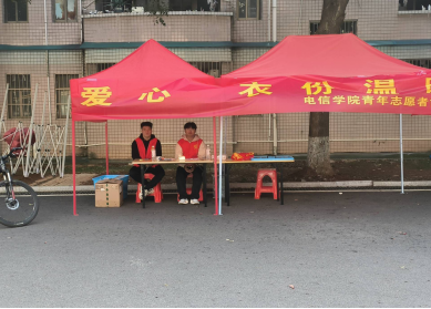 活动前期,各部门分工明确,进行了准备工作,如遮阳棚的搭建,存放旧衣箱子的准备,策划书和宣传推文的设计,以及各部门值班时间的安排。活动开始后,各部门成员提前到达指定地点进行场地布置工作安排值班人值班,并做好旧衣回收的记录和募捐同学资料的登记,值班人员由各部门轮班交换。活动后期,由专门工作人员与电信青协进行旧衣回收的对接工作。