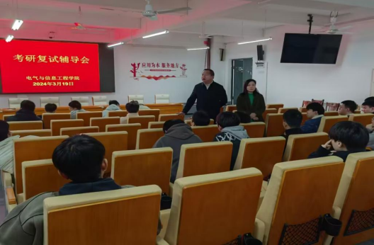 为助力同学们考研上岸,3月19日上午,电气与信息工程学院在3312报告厅举办2024届毕业生考研复试辅导会,帮助即将参加复试的学生全面了解掌握复试、调剂流程和方法。电信学院院长李祖林,党委书记俞斌,副院长喻霞、何西,毕业班辅导员和全体考研上线学生参加。