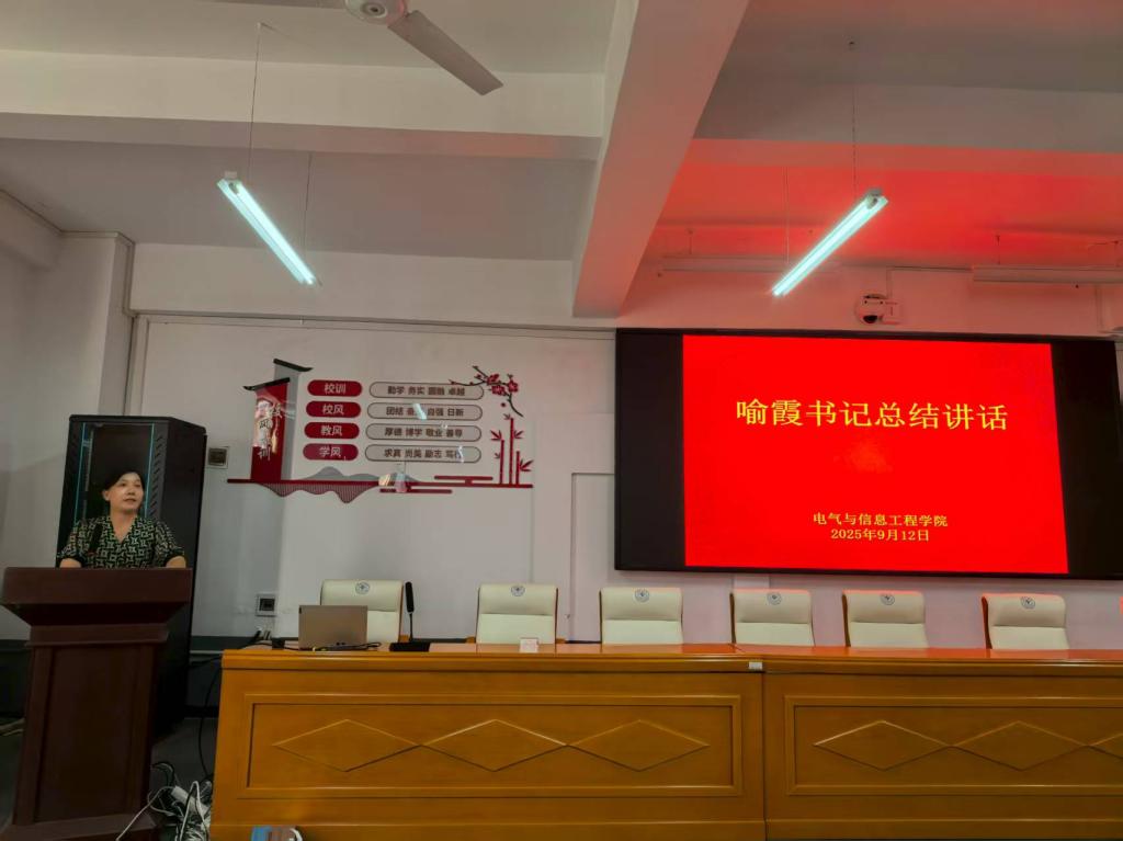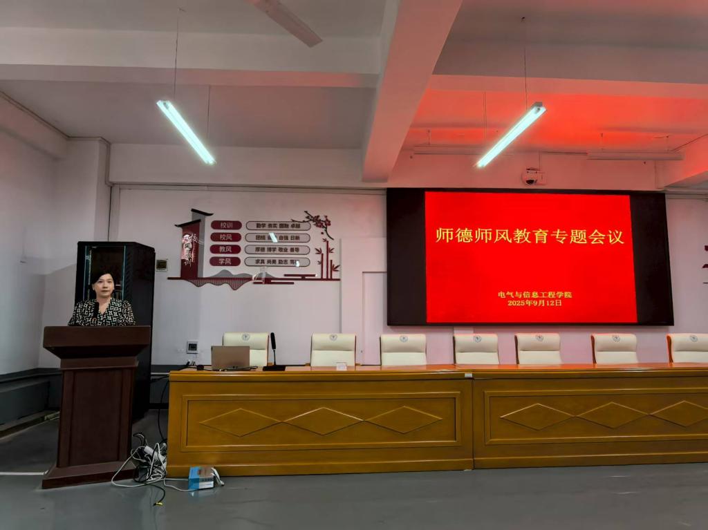 9月12日上午,电气与信息工程学院在3312会议室召开期初教职工大会暨师德师风专题培训会。学院全体教职工及民主党派人士参会,会议由院党委书记喻霞主持。