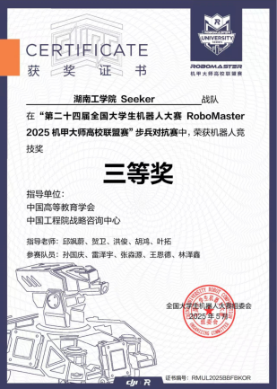 Seeker战队成立于2024年,首次参赛中便崭露头角,荣获2024赛季步兵对抗赛国家一等奖。2025年永利Seeker战队荣获3V3对抗赛二等奖,步兵对抗赛三等奖;并凭借卓越的机器人性能在机器人竞技奖中荣获二等奖两项,三等奖两项。(比赛链接视频:https://b23.tv/52EQ0qm)