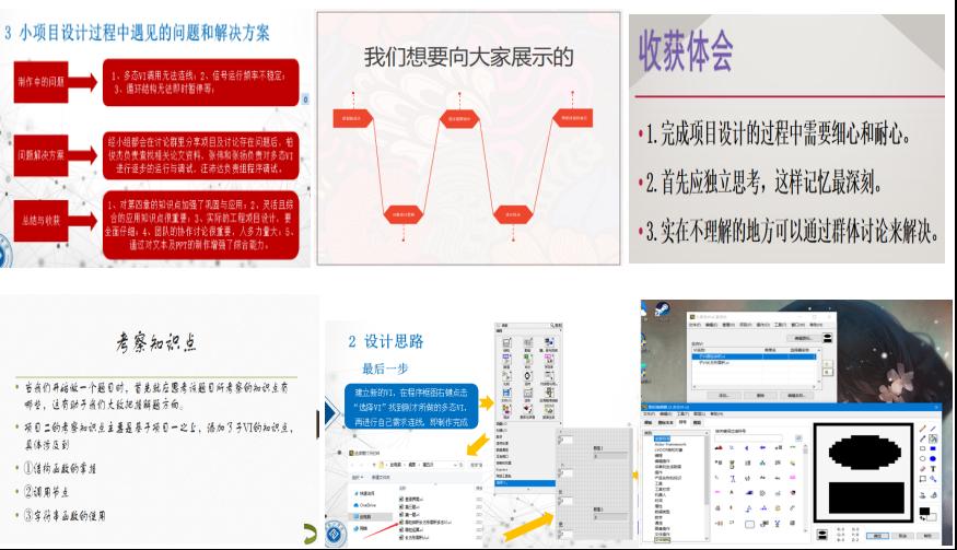 3、教学方式网络化。MOOC平台通过视频学习知识点、参与线上讨论;QQ群实时给予知识点答疑、沟通协作;雨课堂推送作业习题、及时批改;腾讯会议老师直播讲解重点难点、总结当周学习情况、布置下周学习要求、学生分组展示项目设计并相互点评,共同学习,收获颇丰。