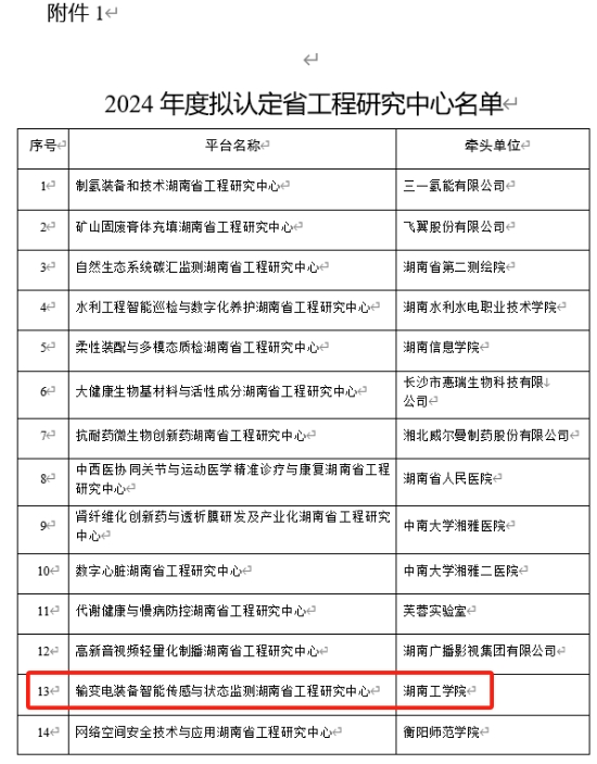 2024年12月20日,湖南省发展和改革委员会发布2024年湖南省工程研究中心名单,永利申报的“输变电装备智能传感与状态监测湖南省工程研究中心”列入省级工程研究中心建设项目计划,衡阳市计量测试中心、特变电工衡阳变压器有限公司为联合单位。