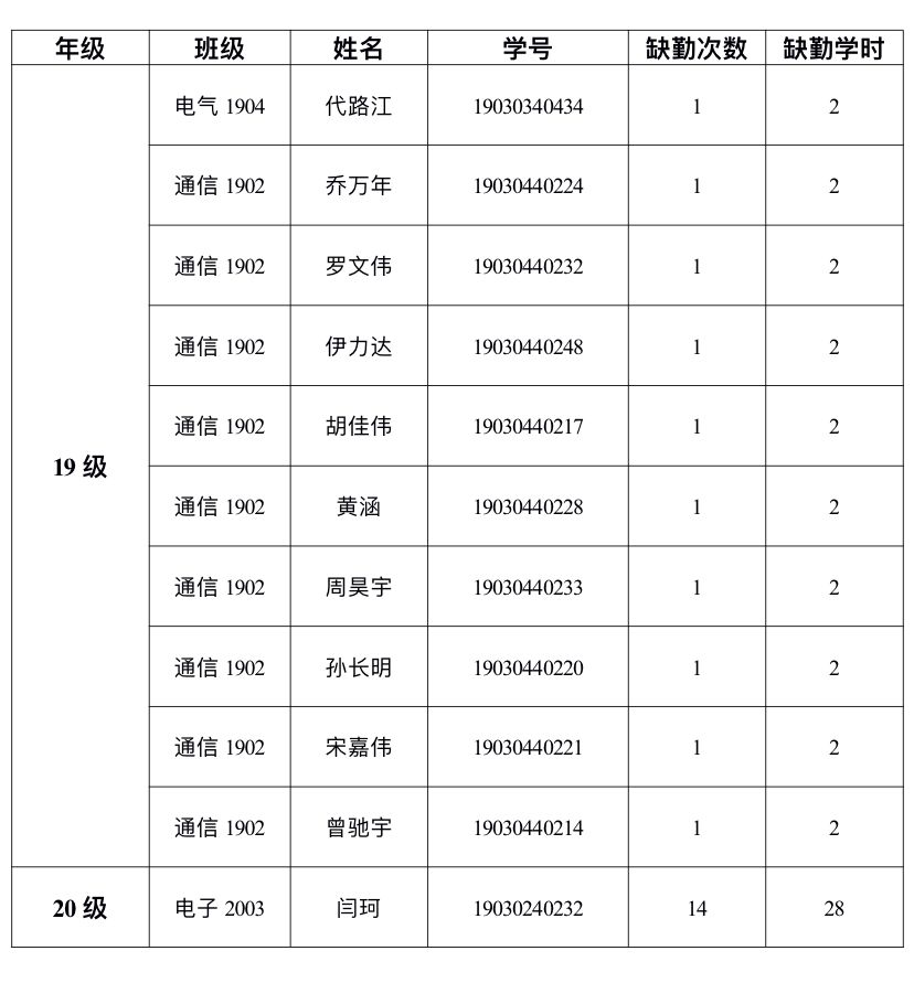 为建设学院学风环境,维持学院学风气氛,本部门按时收取了本周课堂考勤表与学生考勤表。现将考勤情况公布如下: