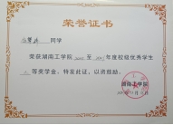在校期间曾获国家励志奖学金、校级一等奖学金、校级二等奖学金、校级三等奖学金、校级优秀学生干部等。