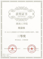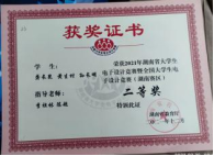 曾获得湖南省大学生英语口语网络大赛三等奖、两次校级一等奖学金、两次校级三好学生、校级二等奖学金、“挑战杯”大学生创业竞赛校级银奖、校级优秀共青团员等。