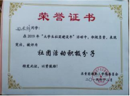 在校期间,积极参与学校活动。曾获得校级三好学生、校级优秀学生干部标兵、校级优秀工作者等荣誉称号;学习上勤奋好学,获得国家励志奖学金、校级三等奖学金和二等奖学金等荣誉。