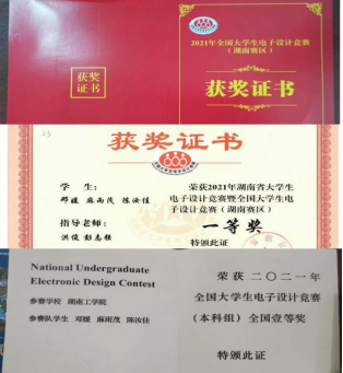 2021年11月获全国大学生电子设计大赛省二等奖。