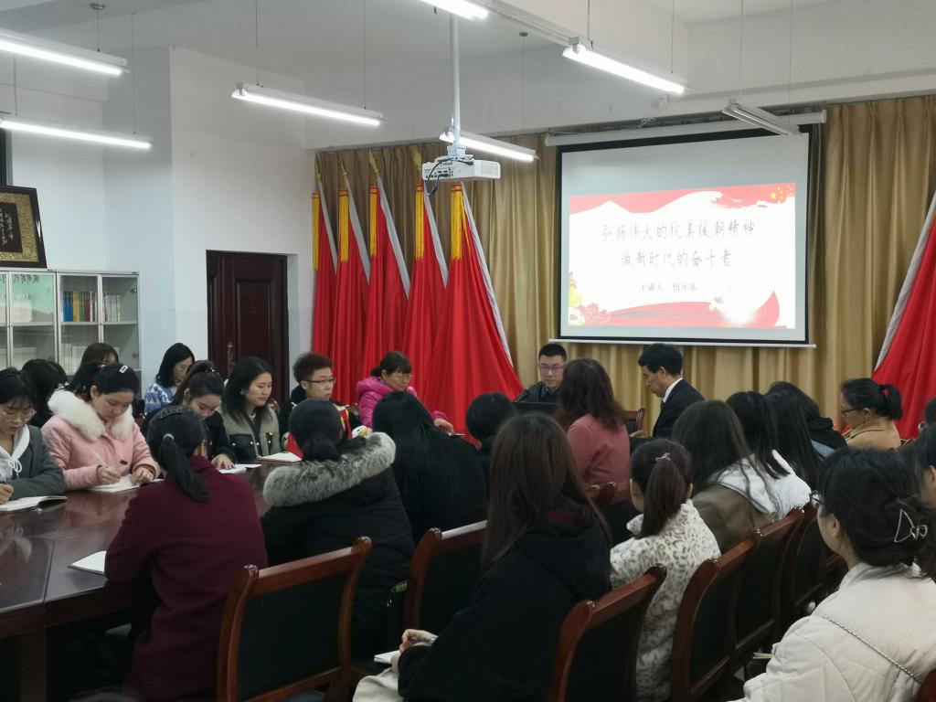 马克思主义学院副院长伍小乐博士以“弘扬伟大的抗美援朝精神,做新时代的奋斗者”为题,带领大家共同追忆了70年前抗美援朝战争英雄的中国人民志愿军舍生忘死、浴血奋战的作战历程,创造了人类战争史上以弱胜强的光辉典范,谱写了气壮山河的英雄凯歌,彰显了伟大的抗美援朝精神。他深入浅出地讲述了抗美援朝彭德怀元帅和邱少云等英雄们的光辉事迹,深入解读了“中国共产党为什么能”。参加学习的师生深受感染,备受鼓舞,纷纷表示要向革命前辈学习,不忘初心,牢记使命,铭记党史,继承和发扬革命精神,为实现第二个百年目标不懈奋斗。