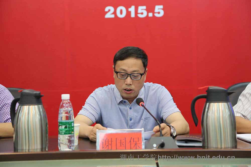 谢国保指出,开展“三严三实”专题教育活动对我们学校来说,恰逢其时。年底学校将接受教育部本科教学工作合格评估,评估工作事关学校的前途命运和发展,事关学校的社会地位和社会影响。离专家组进校评估还不到200天了,迎评工作涉及方方面面,任务繁重、困难不少、问题不少。全校上下特别是各级领导干部一定要从学校未来发展的全局出发,自觉践行“三严三实”,统一思想、凝心聚力,将迎评工作作为各项工作的重中之重,并在“着力在宣传发动、着力在整改提高、着力在质量效率和着力在责任落实”的四个着力上下功夫。