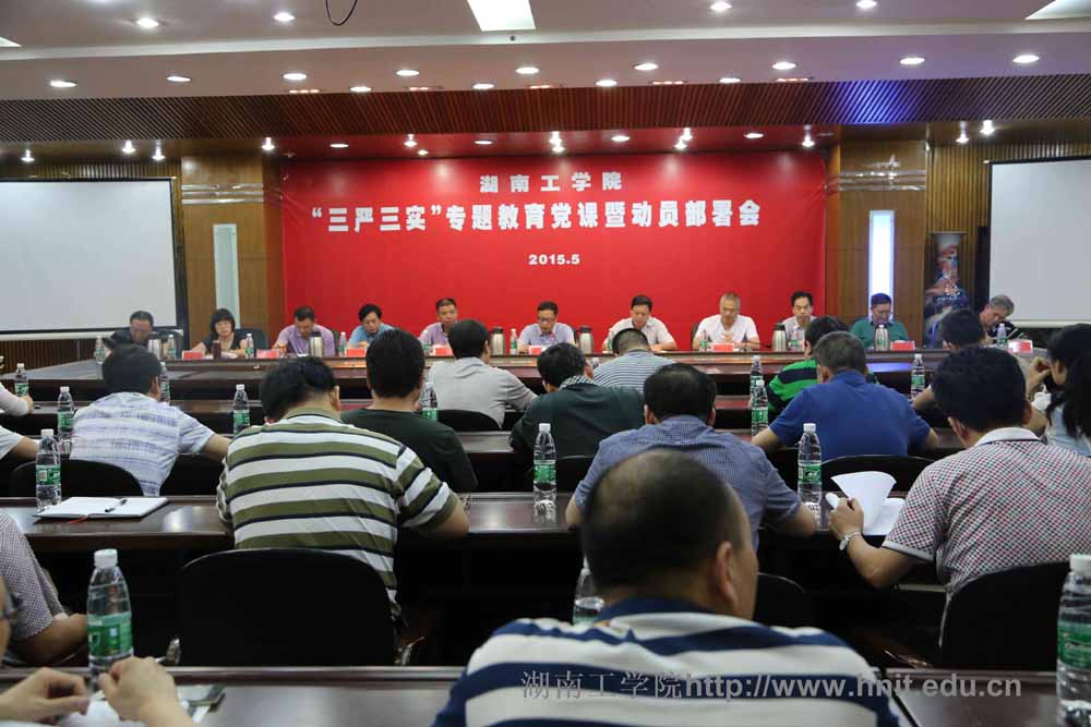 5月28日下午,学校党委在信息楼大会议室召开“三严三实”专题教育党课暨部署动员会。校党委书记谢国保出席会议并讲党课。校党委副书记罗建华主持会议并作工作部署。全体校领导,全体副处及以上干部参加会议。