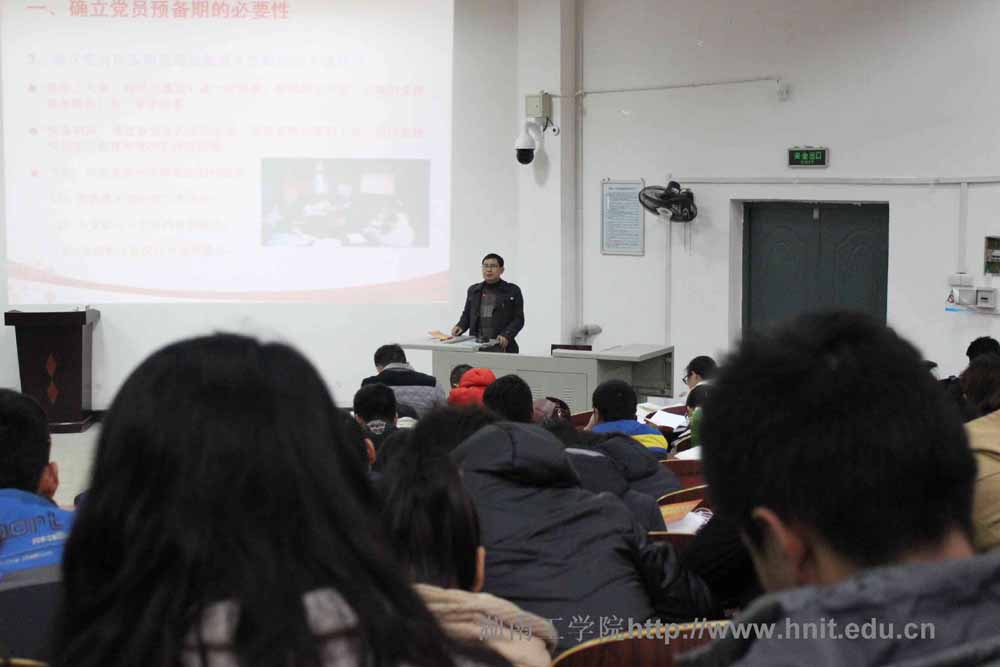 本次培训班采取课堂教学、观看录像、课后自学、课后讨论、撰写结业论文(调研报告)相结合的形式。1214日主要进行的是四次课堂教学辅导,分别由党委副书记、党校校长罗建华教授主讲《群众路线教育实践与党性修养》,党委组织部部长、党校常务副校长陈云龙主讲《学生党员如何发挥先锋模范作用》,经济与管理学院党总支书记张忠贤主讲《党的十八届四中全会精神辅导报告》,党委组织部副部长贺新华主讲《预备党员的教育、考察、转正》。