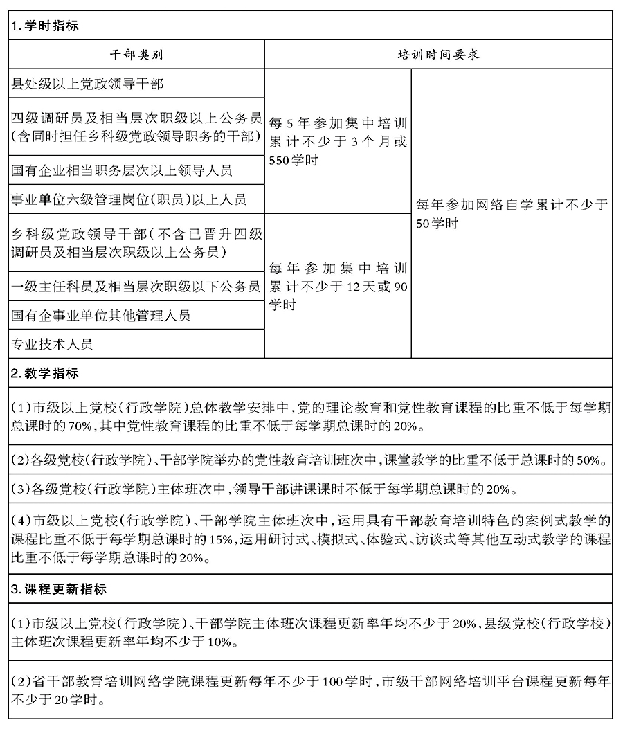 干部教育培训量化指标
