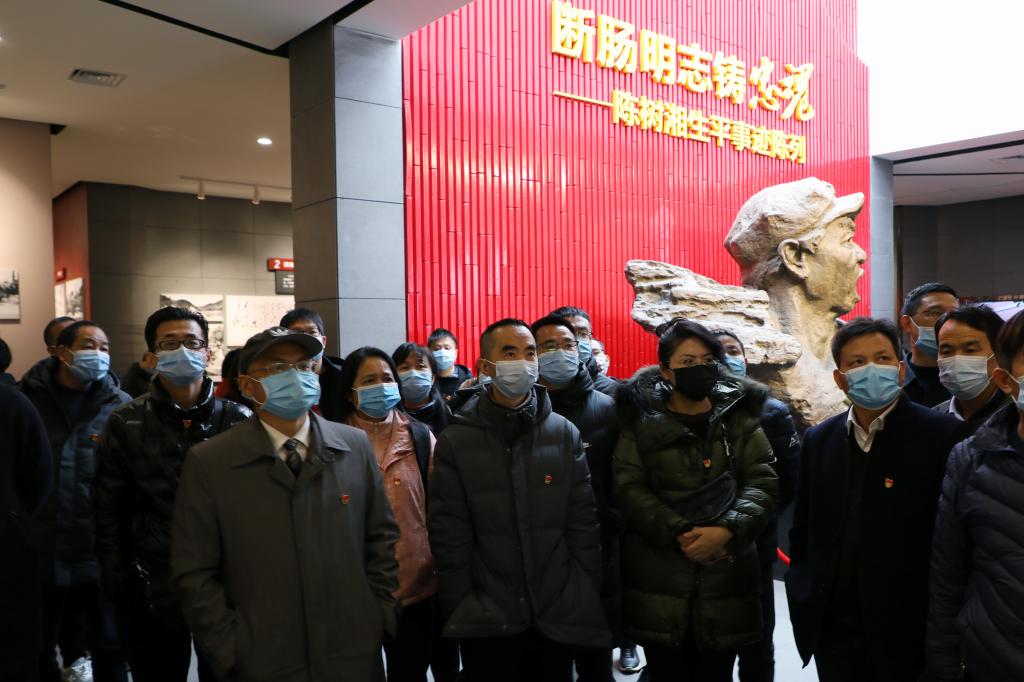 在陈树湘生平事迹陈列里,馆内大幅鲜红的背景印证着共和国的底色是红色的。通过讲解员的解说和一幅幅传神的影像,大家对陈树湘的生平事迹、革命战斗史有了一个更加全面的了解,陈树湘烈士在他29年的短暂一生里,矢志不渝跟党走,一腔热血筑忠魂,用自己的生命践行和谱写了一曲对党和人民绝对忠诚的生命赞歌。“断肠明志,为苏维埃新中国流尽最后一滴血! ”这样的豪情和壮志深深地打动和折服了在场每一个人。在陈树湘烈士墓前,大家队列肃立,向墓碑鞠躬致敬、献花,缅怀英烈。